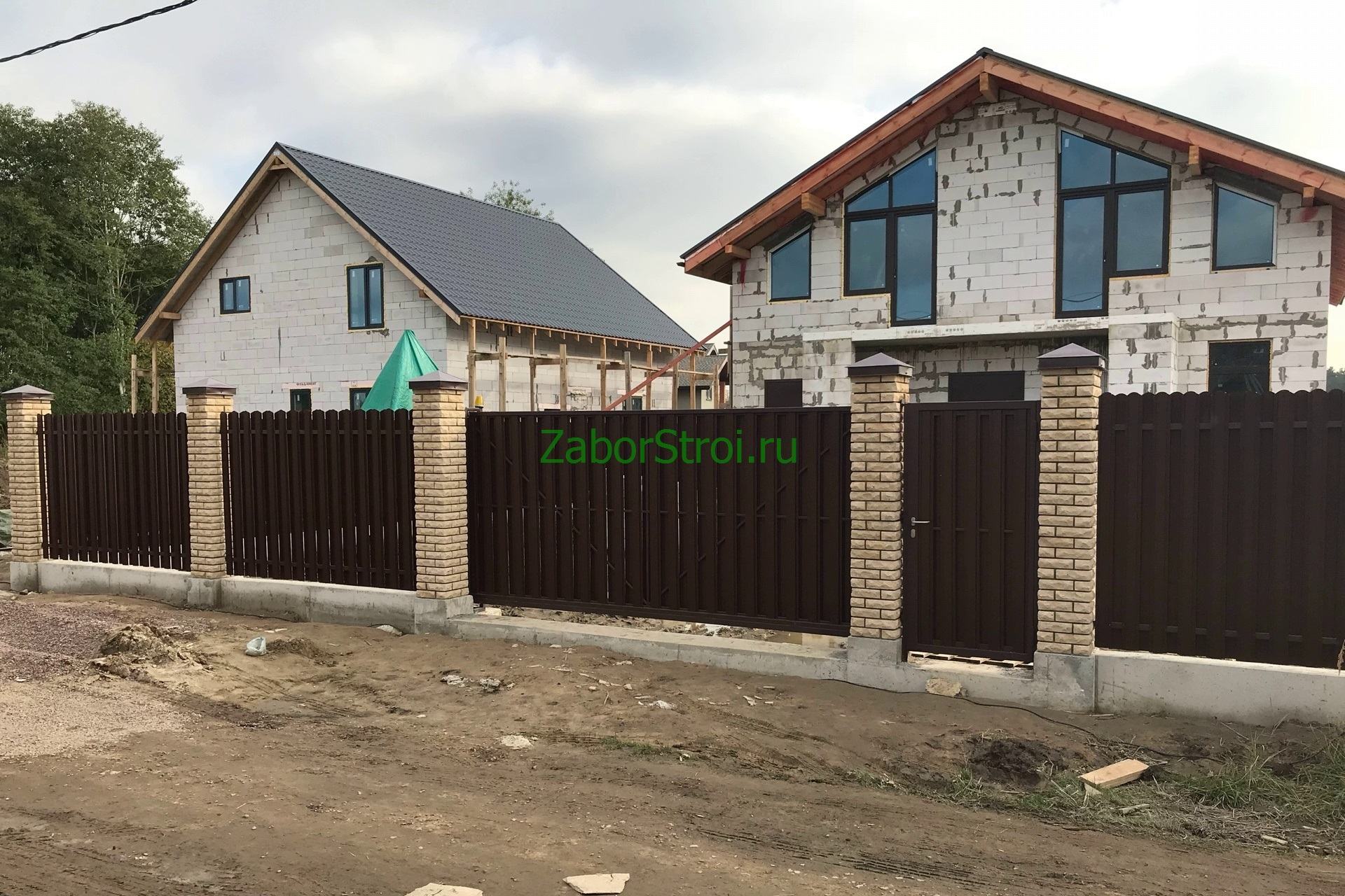 Откатные ворота из евроштакетника на винтовых сваях (цена на бетонном основании +20000р)
